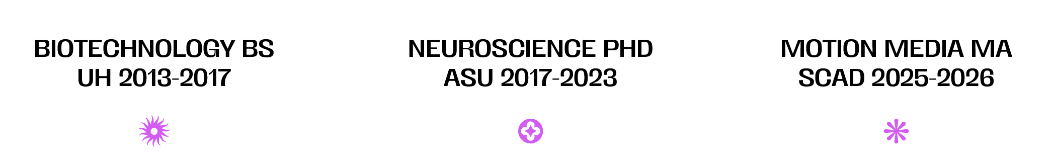 I am a motion media designer with a PhD in Neuroscience, working under the name She the Scientist — I see the world and create through a curiosity-driven lens.