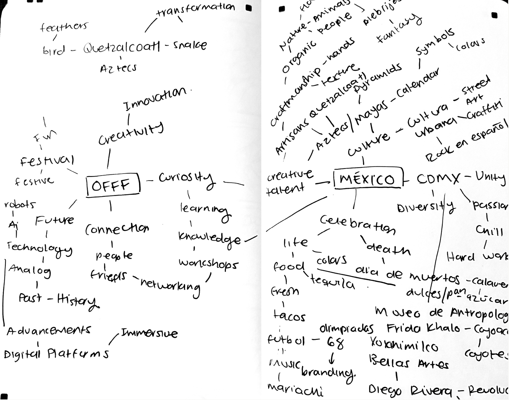 I started with a mind map and gathering inspiration from Mexican prehispanic culture and iconic design.